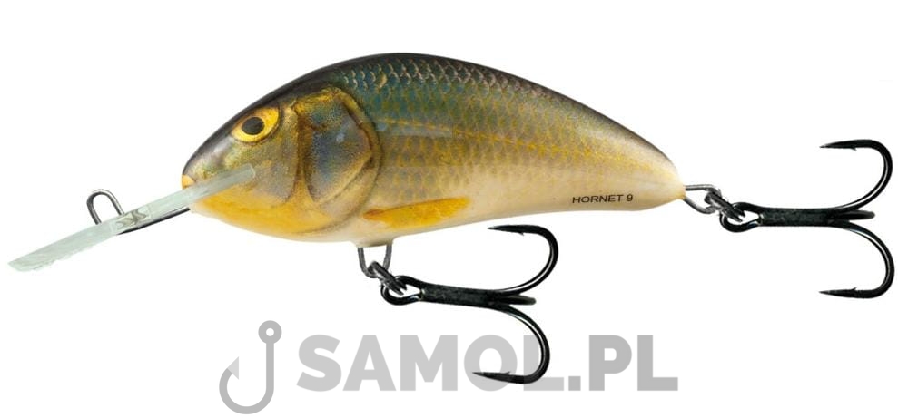 Stworzony we współpracy z najlepszymi węgierskimi łowcami sumów i wprowadzony do oferty Salmo w 2011 roku, Hornet 9 szybko udowodnił, że jest pełnoprawnym członkiem rodziny! Wśród dużych crankbaitów oferowanych przez konkurencję niewiele jest mu w stanie dorównać niezawodnością i jakością. Jak przystało na wobler na wielkie okazy, Hornet 9 wytrzyma walkę z największym nawet sumem. Dodatkowym atrybutem są wzmacniane kółka łącznikowe i specjalne kotwice. Oferowany w wersji pływającej sprawdził się już w połowie wszystkich dużych drapieżników zarówno na jeziorach jak i rzekach.