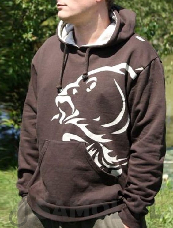 Oldschoolowa bluza w ciemnym kolorze brązu z dużym logiem na przodzie. Jej wewnętrzny materiał został pokryty polarem co zapewnia dużym komfort i ciepło.