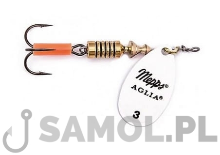 Błystka obrotowa Mepps Aglia została tak zaprojektowana, że po wpadnięciu do wody od razu pracuje. Stożek obrotu stale dostosowuje się do siły prądu, bądź prędkości prowadzenia, dzięki czemu Aglia stale emituje właściwe i zamierzone wibracje.