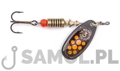 BŁYSTKA OBROTOWA MEPPS BLACK FURY CZARNA - POMARAŃCZOWE KROPKI