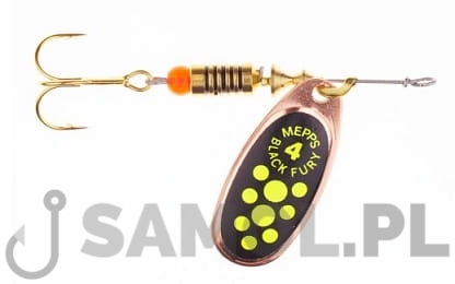 BŁYSTKA OBROTOWA MEPPS BLACK FURY MIEDZIANA - SELEDYNOWE KROPKI