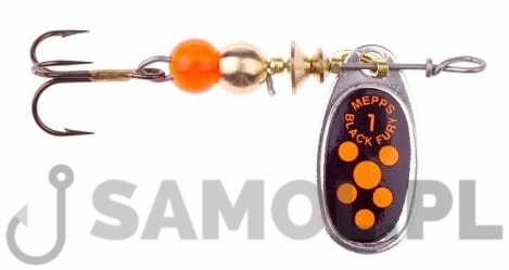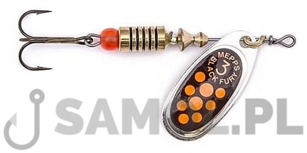 BŁYSTKA OBROTOWA MEPPS BLACK FURY SREBRNA - POMARAŃCZOWE KROPKI