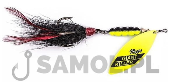 Błystka obrotowa Mepps Giant Killer Fluo to kolejna błystka wykoncypowana na szczupaki – potężna paletka Aglia Long nr 5 i kotwica z wielką muchą z sierści wzbogaconą o pióra szyjne koguta, które nadają dodatkowy ruch wabiący.