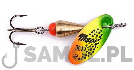 Błystka Mepps XD to bezstrzemiączkowe błystki (zwane w Polsce “garbatkami”) z przeciążonym korpusem w kształcie kropli. Służą do łowienia na większych głębokościach w akwenach z wodą stojącą, a na rzekach w głębokich rynnach o mocnym uciągu.