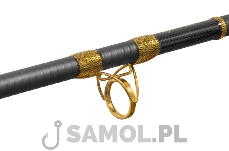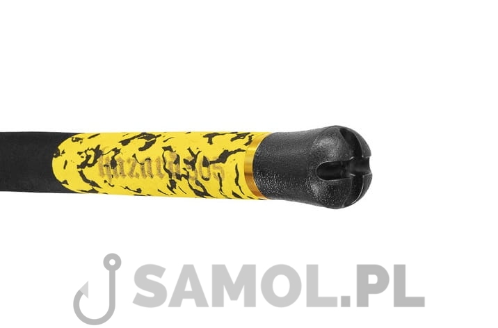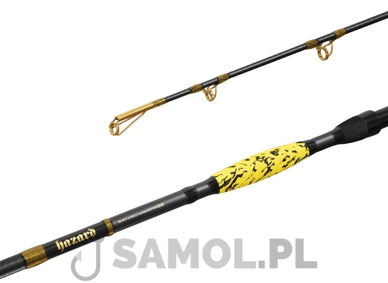 Po udanej serii wędzisk HAZARD, postanowiliśmy przygotować perłę sprzętu sumowego, jaką jest limitowana edycja wędziska Delphin HAZARD BxG. Wymagające warunki, ekstremalne przeciążenia i długie zmagania z silną rybą. To są właśnie warunki, których oczekuje wędka HAZARD BxG i z którymi jest gotowa sobie poradzić. Przy konstruowaniu wędki wykorzystaliśmy całą wiedzę z naszych poprzednich modeli wędzisk przeznaczonych do połowu sumów, szczególnie do castingu i łowienia podwodnymi spławikami. Korpus blanku jest niezwykle mocny i trwały. Długotrwałe przeciążenie blanku nie jest niczym, co mogłoby zaskoczyć wędkę i w dłuższej perspektywie czasowej blank nie pęknie. Jednak testy mocy w warunkach laboratoryjnych wykazały ponad 1,5-krotne zwiększenie sztywności w porównaniu do konwencjonalnych typów! Przelotki są oczywiście w całości metalowe i bez wypełnienia, co zapewnia ich niezwykle długą żywotność. Połączenie spigotowe wędziska wyposażyliśmy w dodatkową warstwę X-Carbonu oraz oplot. Dodatkowo umieściliśmy na nim również dwa metalowe pierścienie zabezpieczające. Dzięki temu złącze spigotowe - pięta achillesowa większości wędek - stało się niezwykłą zaletą Hazard BxG! Odpowiednio duży metalowy pierścień zabezpieczający hak nad rękojeścią to tylko bonus, który otrzymujemy wraz z tym zaawansowanym narzędziem do połowu olbrzymich ryb. Mimo ogromnej mocy, dzięki zastosowanym komponentom wędka zachowuje stosunkowo niską wagę. Jednak komfortowe prowadzenie podczas zmagań z sumem zapewnia również wygodna pianka EVA czy zakończenie rękojeści, które tworzy łącznik do mocowania na pasie podbieraka. Unikalny design uzupełniony prowadnicami w złotym kolorze lub żółto-czarną pianką EVA dodaje Twojemu sprzętowi odpowiedniego polotu i nieporównywalnej oryginalności.