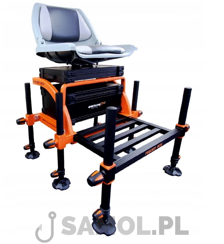 Profesjonalny kosz wędkarski dla wędkarzy wyczynowych, a w szczególności dla miłośników feedera. Niepowtarzalna konstrukcja wykona z lekkiego i wytrzymałego stopu aluminium, 6 regulowanych nóg , obrotowy fotel oraz stabilność i trwałość to charakterystyczne cechy użytkowe które sprawiają, że FEEDER BOX - 360 to najwyższa półka.