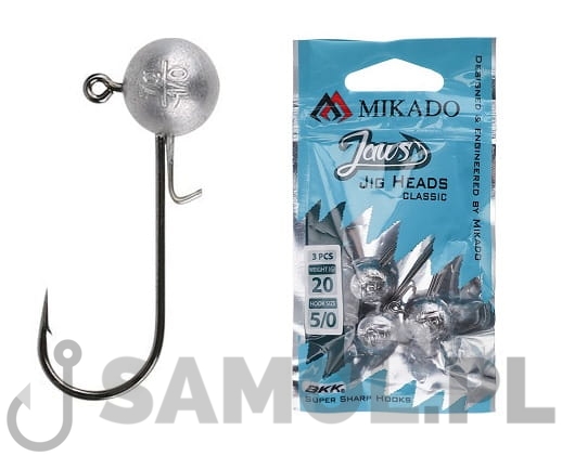 Główki jigowe Mikado Jaws Classic Jig to jak sama nazwa wskazuje są to bardzo klasyczne główki, jednak klasyczne nie znaczy przeciętne. Najwyższej jakości haki BKK stanowiące solidną bazę dla tych główek to tylko pierwszy z niekwestionowanych atutów. Kolejnym jest niewielki haczyk zapewniający stabilne utrzymywanie się przynęty.