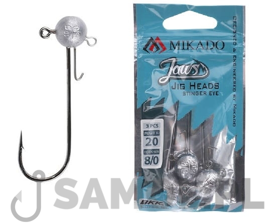 Główki jigowe Mikado Jaws Stinger Eye Jig dostępne są w rozmiarach: 10,15 i 20 gram.