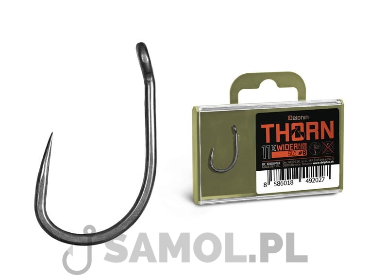 Delphin THORN to linia premium haczyków karpiowych najwyższej jakości. Dzięki nowoczesnym technologiom, które zostały zastosowane przy produkcji haczyków są one synonimem bezkompromisowej wytrzymałości i maksymalnej ostrości.