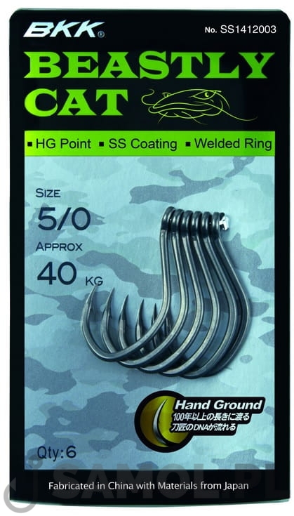 Haczyki BKK Beastly Cat SS1412003 to niesamowicie ostre haki sumowe wykonane z grubego drutu w technologii Super Slide. Ręcznie szlifowane ostrza HG Point gwarantują pewne wcięcie oraz bezpieczny hol okazowych sumów.