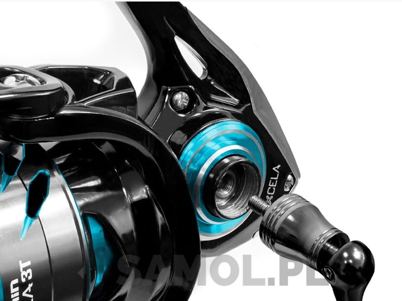 Delphin IXCELA to bezkonkurencyjny model wśród kompaktowych kołowrotków. Ma on bardzo wytrzymały aluminiowy, wodoodporny korpus oraz wał główny ze stali nierdzewnej i mocne łożyska kulkowe. Dodatkowo korbka jest z wewnętrzną śrubą bez żadnej kontry. Delphin IXCELA to bardzo przyjemny i niezawodny kołowrotek z przednim hamulcem i kompaktowymi wymiarami. Jego podstawę stanowi korpus o bardzo ciekawym kształcie, który wykonany z bardzo mocnego i wytrzymałego czarnego materiału. W połączeniu ze srebrnymi i niebieskimi elementami IXCELA robi duże wrażenie pod względem wzorniczym.Łożyska kulkowe 6 + 1 zapewniają bardzo łatwe i płynne użytkowanie, jest to kluczowy parametr każdego kołowrotka wysokiej jakości. Niezawodny mechanizm z idealnym przełożeniem 5,1: 1 pozwala na dokładne nawinięcie żyłki na szpulę. Bardzo charakterystyczna szpula posiada nacięcia przypominające pazury. Rękojeść kołowrotka IXCELA jest mocowana do korpusu poprzez wkręcenie go w wewnętrzną nakrętkę, co minimalizuje luz komponentów i tworzy bardzo solidne połączenie. Gałka samej rękojeści pokryta jest gumą, dzięki czemu jest bardzo przyjemna i wygodna w dotyku.