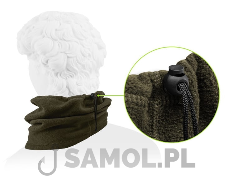 Na ekstremalne warunki pogodowe zaprojektowaliśmy kolekcję odzieży polarowej o nazwie FLIX. W tej serii nie mogło zabraknąć osłony chroniącej szyję przed ostrym zimnem lub mrozem. Dla jeszcze lepszej ochrony i ciepła, komin posiada sznurek ściągający, a materiał polarowy nie powoduje swędzenia i jest bardzo miły w dotyku. Dodatkową zaletą tego rodzaju materiału są lepsze właściwości izolacyjne, które odczuwa się od razu. Dzięki zielonemu kolorowi, idealnemu dla każdego wędkarza lub myśliwego, FLIX stanie się stałym elementem Twojego zimowego stroju.