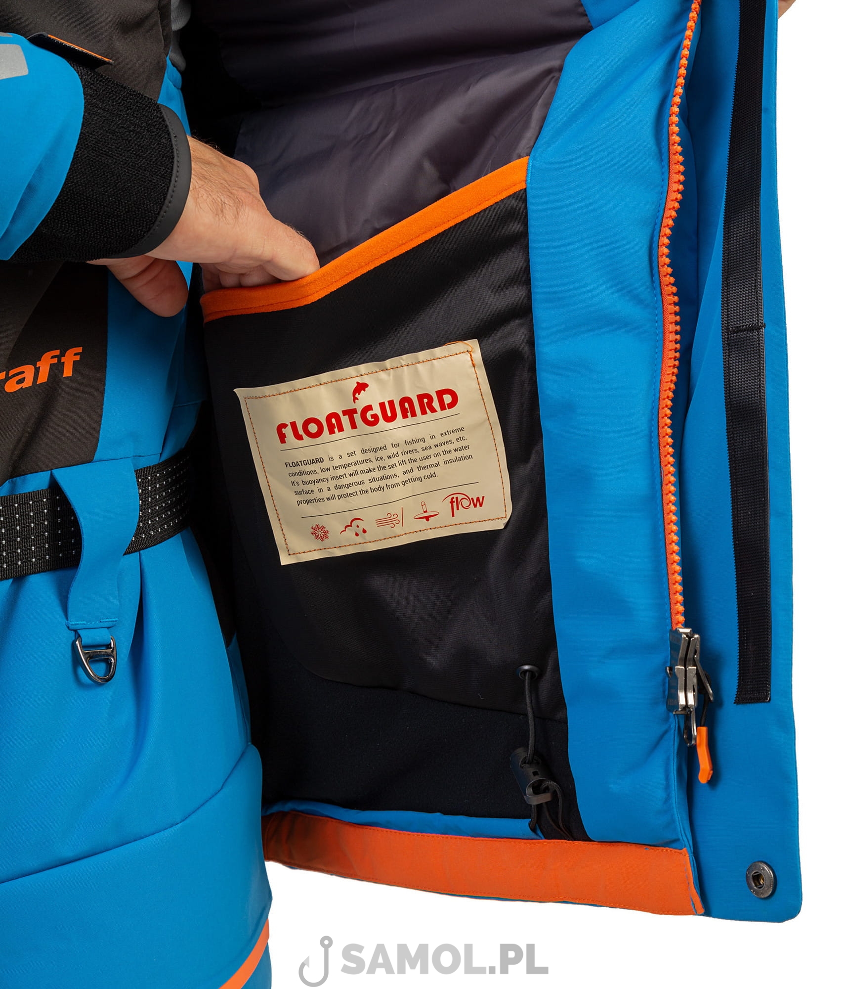FLOAT GUARD to specjalnie zaprojektowany komplet wypornościowy, który został wypełniony multiwarstwową pianką poliuretanową. Jest przeznaczony dla ludzi łowiących w ekstremalnych warunkach i szczególnie lubiących wędkarstwo podlodowe. Pianka zwiększa zdolność użytkownika do utrzymywania się na wodzie w sytuacjach zagrożenia i wpadnięcia do wody. Struktura pianki to miliony pęcherzyków tworzących przestrzenie, gdzie zatrzymuje się ciepłe powietrze. Chroni ona przed zimnem i zmniejsza ryzyko wystąpienia hipotermii. Dodatkowo, aby zwiększyć bezpieczeństwo użytkownika w drodze do łowiska, jak i na wodzie, komplet wędkarski z funkcją wypornościową wyposażono w charakterystyczne elementy odblaskowe.
