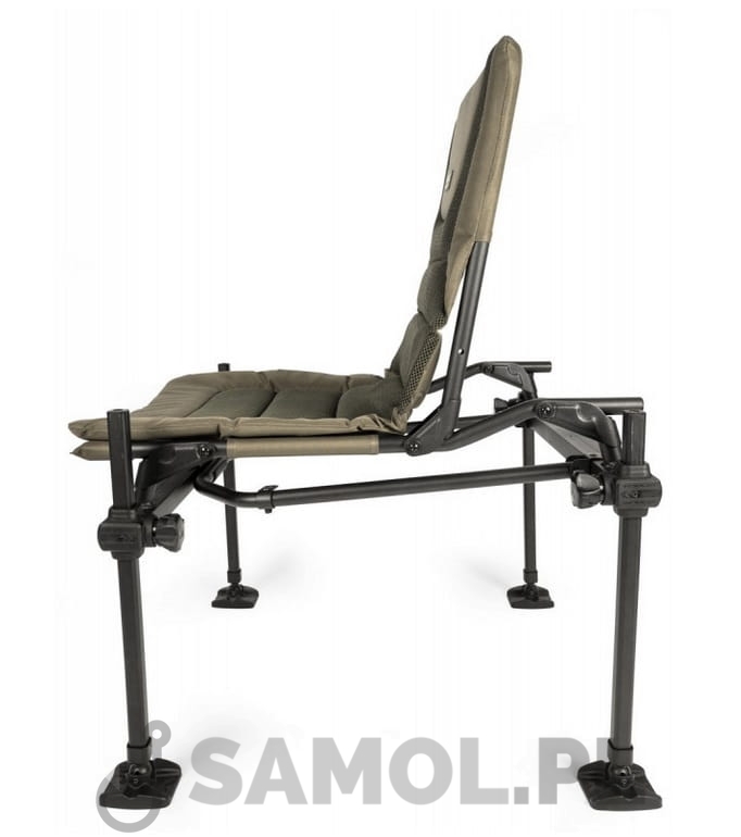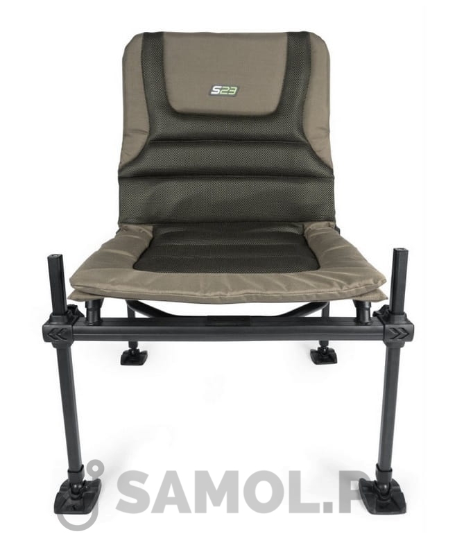Krzesło Korum S23 Standard Accessory Chair K0300022 wyposażone jest w opatentowaną konstrukcję pionowych nóżek wykorzystującą teraz zaokrągloną kwadratową nogę 23 mm, dzięki czemu jest łatwiejsza w użyciu niż kiedykolwiek wcześniej. S23 poprawia stabilność i system regulacji nóg, jednocześnie znacznie ułatwiając korzystanie z fotela z akcesoriami. Materac wykonany jest z najwyższej jakości lekkich materiałów, zapewniających lepszą oddychalność i wygodę. Krzesło Korum S23 Standard Accessory Chair to kolejne z rodzin krzeseł wędkarskich marki Korum cieszących się do tej pory najlepszą opinią względem konkurencyjnych modeli.