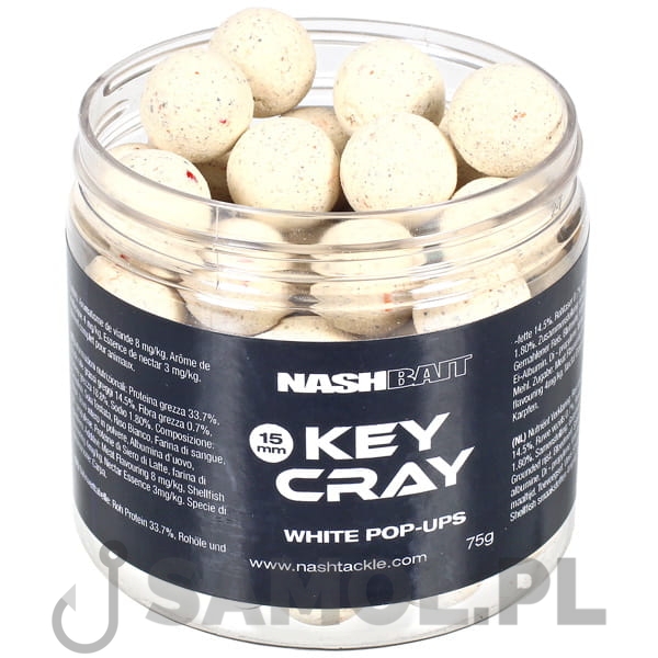 Kulki pływające w wersji w kolorze białym. Zawierające ogromna ilość maczki z całych raków oraz bogaty skład mineralny i aminokwasowy. Stanowią doskonałą przynętę jak i zanętę oparta o naturalne składniki występujące w diecie karpi. Wykorzystując wyjątkową atrakcyjność zbieranych raków seria The Key Cray, to pierwsza przynęta HNV (o wysokiej jakości odżywczej), wykorzystująca najbogatsze słodkowodne źródło pokarmu jakie występuje w naturze. Łączy w sobie zwykłą bazę przynęty The Key zawierającą bardzo wysoki poziom protein, aminokwasów, niezbędnych witamin oraz minerałów z zabójczo skuteczną miazgą z całych słodkowodnych raków. To połączenie tworzy unikalny, wysoko odżywczy zestaw, który przejdzie do historii jako jedna z najskuteczniejszych przynęt jakie kiedykolwiek zostały stworzone.