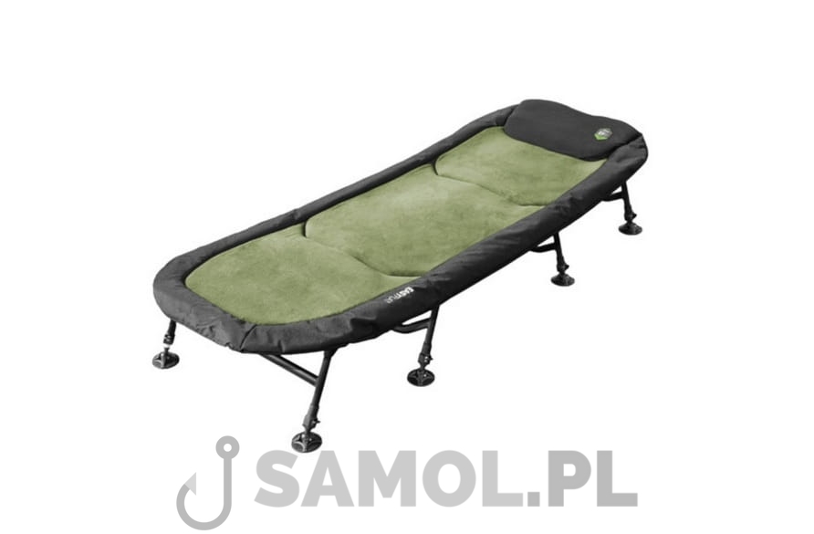 Ten model dowodzi, że wygodne łóżko wędkarskie na ośmiu nogach nie musi kosztować majątku. EF8 to podstawowy model wygodnych łóżek. Dzięki swoim ośmiu nogom jest bardzo stabilny. Rozmiar materaca to 195x75 cm. Antypoślizgowe stopy są instalowane na kulistych nóżkach, więc dostosowanie się do nierównego terenu nie stanowi problemu. Materac składa się z solidnego polaru w kolorze khaki, który jest wygodny, miękki i ciepły. Zagłówek jest również wykonany z polaru, ale czarny. Sztywność materaca można regulować w części nóg i głowy, naciągając linkę poprowadzoną pod leżakiem. Górną parę nóg można zablokować aby zapobiec niepożądanemu ruchowi. Wysokość łóżka w podstawowym położeniu wynosi 33 cm, po wyciągnięciu teleskopowych nóg wysokość maksymalna wynosi 43 cm. Po złożeniu można zamknąć je za pomocą odpinanego paska z plastikowym klipsem.
