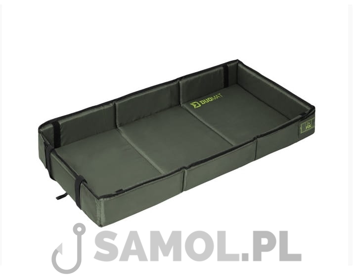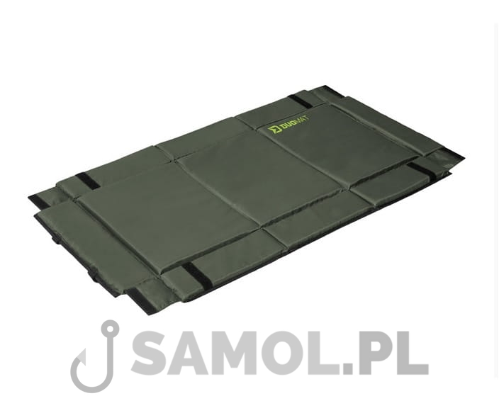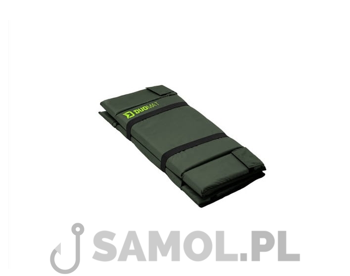 Delphin DUOMAT to właściwy wybór dla wędkarzy, którzy nie mają wystarczająco dużo miejsca, aby nosić dużą matę lub kołyskę. Mata ma grubą wyściółkę, która może chronić nawet największe karpie. Pianka zastosowana do jej wyściółki zapewnia o około 30% większa gęstość niż w przypadku innych standardowych mat. Nie ma ryzyka obrażeń ryby, nawet na skalistej powierzchni. Wyróżnia się ona bardzo dobrą jakością wykonania i użytego materiału. DOUMAT oznacza również, że tę matę do odhaczania można używać jako matę standardową bez podniesionych krawędzi, lub możemy po prostu podnieść te krawędzie i przymocować je za pomocą zapięć na rzepy znajdujących się w każdym rogu. Tworzy to bezpieczniejszą wanienkę z podniesionymi krawędziami. Może to zapobiec wydostawaniu się ryby i być może jej zranieniu. Mata jest również wyposażona w dwie metalowe szpilki i wszyte oczka, które służą do przymocowania do podłoża podczas wietrznej pogody. Na te szpilki zaprojektowano małą kieszeń, dzięki czemu są zawsze pod ręką. Mata wykonana jest z szybko schnącego materiału, który jest łatwy do czyszczenia. Dzięki przemyślanej konstrukcji i wysokiej jakości detali, nasza mata do odhaczania DUOMAT otrzymała nagrodę Grand Prix na targach For Fishing 2020 w kategorii: najciekawszy produkt targów. DUOMAT to wysokiej jakości i bardzo kompaktowa opcja mata, która jest znacznie łatwiejsza do przenoszenia.