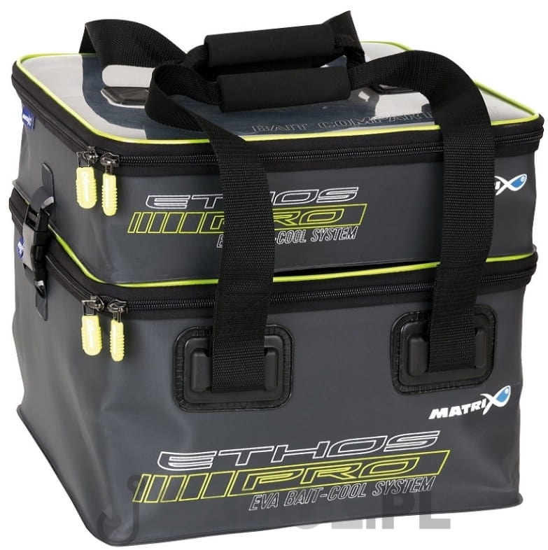System zaprojektowany jako kompletne rozwiązanie problemu przechowywania przynęt. Wykonany z wytrzymałego materiału EVA ze zgrzewanymi szwami dla pełnej wodoodporności. Dwupoziomowy układ pozwala na przechowywanie przynęt w wyłożonej folią dolnej części. Zdejmowana górna komora może być umieszczona na bocznej tacce tak, aby chroniła przynęty przed warunkami atmosferycznymi. Dolna część mieści 8 pojemników. Górna komora mieści 4 pojemniki.