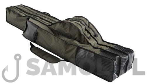 Uniwersalne pokrowce wędkarskie wyposażone w 2 komory służące do transportu wędzisk z kołowrotkami. Dodatkowe dwie boczne kieszenie pozwalają przewozić podłużne akcesoria niezbędne podczas wędkarskiej eskapady jak parasol, sztyce od podpórek czy składany podbierak. Dwa paski pozwalają nosić pokrowiec na ramieniu lub na plecach - jak plecak. Dno pokrowca obszyte antypoślizgowym, wodoodpornym materiałem.