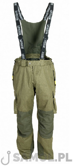 Mivardi Hardcore 3in1 to doskonały strój na jesienno-zimowe i wczesnowiosenne wyjazdy na ryby. Doskonała ochrona przed zimnem, mrozem i przeszywającym wiatrem. Jest to ubranie trzy częściowe: spodnie, kurtka i odpinana podpinka, którą można nosić osobno jak polar. Jak sama nazwa wskazuje jest to strój na naprawdę hardcorową pogodę. Materiał, z którego został wykonany jest 100% wodo i wiatrochronny oraz posiada dużą przepuszczalność powietrza co pozwala odprowadzić ciepło, które wydzielamy dzięki czemu nie pocimy się w nim. Spodnie z czterema kieszeniami zapinanymi na zamki, które są wodoszczelne. Posiadają szelki z ochroną pleców i nerek, z tyłu. W dolnej części spodni przy kostce ściągacze z regulacją na rzep i zatrzaski co pozwala dopasować szerokość nogawki do buta. Kurtka z pięcioma kieszeniami plus dwie kieszenie wewnątrz w podpince. Przy rękawach ściągacze na rzepy zabezpieczające przed dostawaniem się wiatru do rękawów. Kurtka posiada kaptur, który jest usztywniany w części daszka oraz posiada regulację. W razie potrzeby kaptur można odpiąć. Doskonale zaprojektowany krój tego zestawu pozwala wygodnie siedzieć, chodzić, nie wspominając o zarzucaniu, nęceniu czy holowaniu ryb.