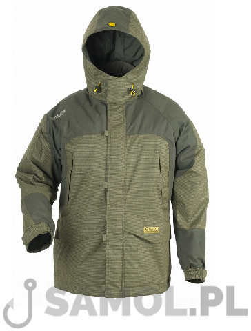 Mivardi Hardcore 3in1 to doskonały strój na jesienno-zimowe i wczesnowiosenne wyjazdy na ryby. Doskonała ochrona przed zimnem, mrozem i przeszywającym wiatrem. Jest to ubranie trzy częściowe: spodnie, kurtka i odpinana podpinka, którą można nosić osobno jak polar. Jak sama nazwa wskazuje jest to strój na naprawdę hardcorową pogodę. Materiał, z którego został wykonany jest 100% wodo i wiatrochronny oraz posiada dużą przepuszczalność powietrza co pozwala odprowadzić ciepło, które wydzielamy dzięki czemu nie pocimy się w nim. Spodnie z czterema kieszeniami zapinanymi na zamki, które są wodoszczelne. Posiadają szelki z ochroną pleców i nerek, z tyłu. W dolnej części spodni przy kostce ściągacze z regulacją na rzep i zatrzaski co pozwala dopasować szerokość nogawki do buta. Kurtka z pięcioma kieszeniami plus dwie kieszenie wewnątrz w podpince. Przy rękawach ściągacze na rzepy zabezpieczające przed dostawaniem się wiatru do rękawów. Kurtka posiada kaptur, który jest usztywniany w części daszka oraz posiada regulację. W razie potrzeby kaptur można odpiąć. Doskonale zaprojektowany krój tego zestawu pozwala wygodnie siedzieć, chodzić, nie wspominając o zarzucaniu, nęceniu czy holowaniu ryb.