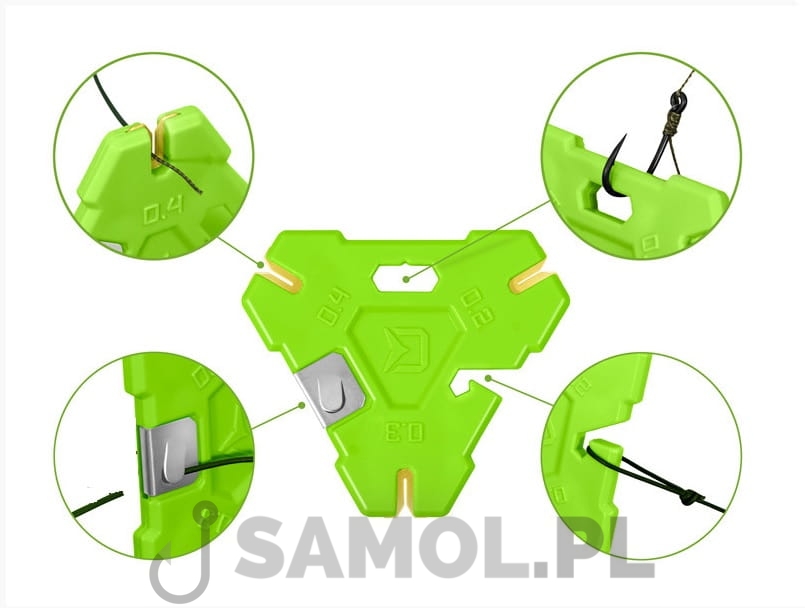 Drugą funkcją jest możliwość zaciskania pętli, do czego służy specjalnie wyprofilowane wycięcie na boku. Otwór w korpusie produktu z rowkiem na haczyk może być również wykorzystany do zaciskania zawiązanych haczyków lub prostowania fluorocarbonu. To właśnie w tym miejscu można zamocować haczyk w taki sposób, aby podczas zaciskania zawsze pozostawał na swoim miejscu, co zapobiega bolesnym ukłuciom palców lub innym urazom.