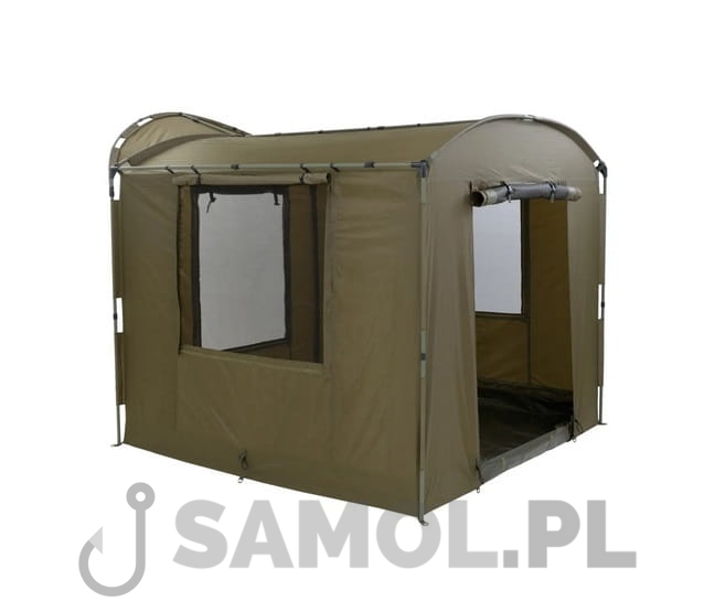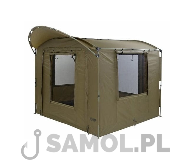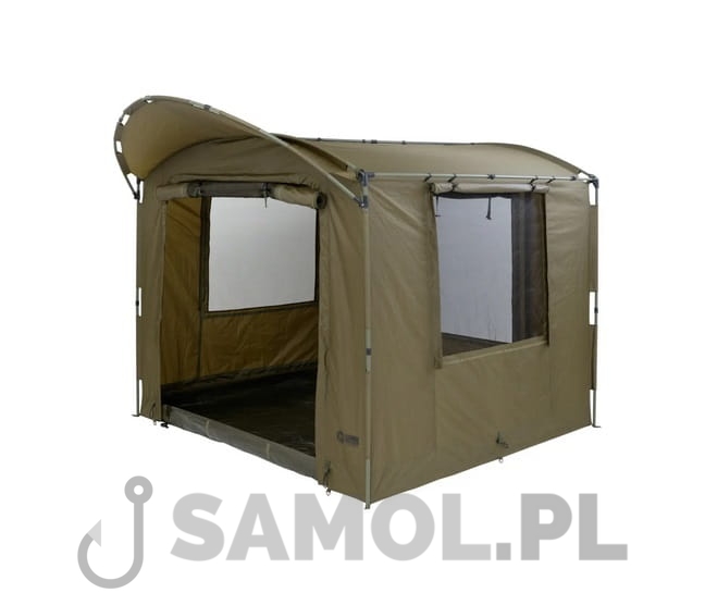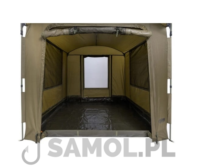 Model wyposażony w podwójne drzwi, każde z możliwością stosowania z panelem pełnym, PCV lub moskitierą. Sporych rozmiarów okna boczne wyposażone są w moskitiery, które pozwolą stworzyć przewiew ale zatrzymają insekty. W namiocie zastosowano wpinana na zamek podłogę pełną, dzięki czemu znacznie lepiej zabezpieczymy wnętrze przed nieproszonymi gośćmi w postaci owadów i gryzoni.