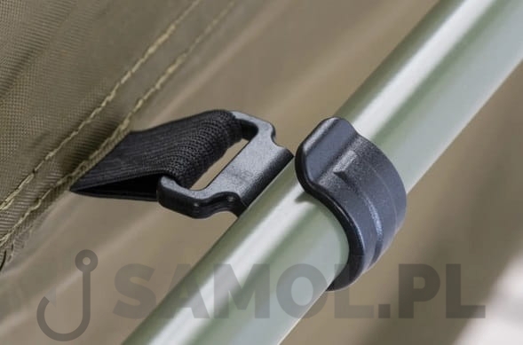 - Osobno oferowany wielofunkcyjny uchwyt do wędek i siatek lądowych, przeznaczony do montowania na bocznej poprzeczce.