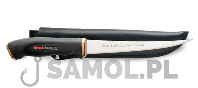 Nóż Marttiini Rapala Presentation BP407 630019 to ręcznie wykonany nóż do filetowania ryb. Wyposażony w wygodną rękojeść dopasowaną do dłoni. Specjalna powierzchnia rękojeści zapobiega wyślizgiwaniu się noża z dłoni. Bezpiecznik na palce chroni przed skaleczeniem. Super ostre ostrze wykonane ze szwedzkiej stali chirurgicznej, najwyższej klasy stali nierdzewnej.