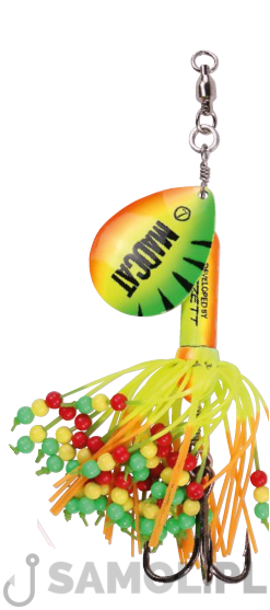 Jest bardzo unikatową obrotówka sumową, która posiada dźwięczący korpus oraz wiele dodatkowych zdobników co jeszcze bardziej uatrakcyjnia ją. Bez wątpienia jest to bardzo skuteczna przynęta sumowa. Potrafi zwabić sumy z dużej odległości ponieważ jej blacha wytwarza bardzo silną fale akustyczną, która rozchodzi się w wodzie, a z bliższych odległości drażni sumy dźwiękiem wydawanym przez specjalny korpus. Dzięki dużej wadze przynęty (85g) można zarzucić ją na spore odległości. Kotwica, która posiada jest ultra ostra i bardzo mocna co pozwoli poskromić nawet największe sumy.