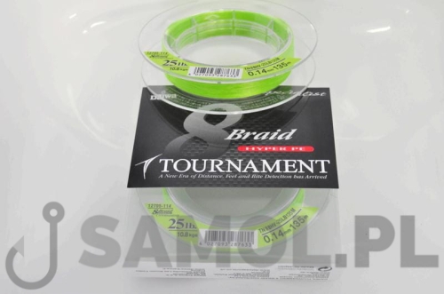 Plecionka marki DAIWA - made in Japan. TOURNAMENT 8 Braid to wysokiej jakości linka o świetnych parametrach, okrągło pleciona z 8 nici -bardziej okrągłego splotu, niż w TOURNAMENT nie znajdziecie. Dzięki specjalnie powleczonej powierzchni plecionka lekko i cicho zsuwa się ze szpuli i przemyka przez przelotki. Łatwa w wiązaniu, gdyż węzły nie ześlizgują się. Udźwig mierzony wg japońskich standardów. Plecionka nie strzępi się przy częstym użytkowaniu i zachowuje średnicę. Dostarczana na specjalnej szpuli do bezpośredniego nawijania na kołowrotek.
