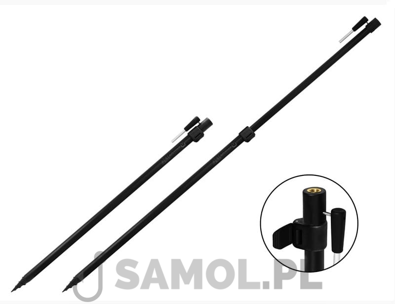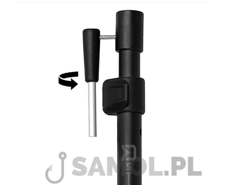 Delphin D-STICK to teleskopowa sztyca z końcówką do wwiercania się w grunt. Jest to solidny i lekki produkt najwyższej jakości. Podstawa tych sztyc jest wykonana z grubościennych rur o matowym czarnym wykończeniu. D-STICK to bardzo solidny produkt, który zagwarantuje jego trwałość. Model ten wyposażony jest w innowacyjny mechanizm przesuwny i blokujący który jest wykonany z wysokiej jakości tworzywa ABS. Dokonaliśmy przeprojektowania tej konkretnej części i od tej pory nie będzie się luzować i jest o wiele łatwiejsza w obsłudze. Dolna część sztycy jest wyposażona w solidny i ostry świder, który pozwala wiercić się w twardsze powierzchnie. Ten element ślimakowy jest zabezpieczony sworzniem (nitem), co stanowi ogromną zaletę. W rezultacie nie ma ryzyka, że sam ślimak utknie w ziemi, pozostawiając niefunkcyjną sztycę! Jest to wyjątkowo silne połączenie. U góry znajduje się uchwyt, który wsuwa się w dolną część i służy jako dźwignia podczas wwiercania świdra w twardsze powierzchnie. Koniec górnej części sztycy jest wyposażony w masywny gwint, przeznaczony do zamontowania rodpoda lub elektronicznego sygnalizatora brań.