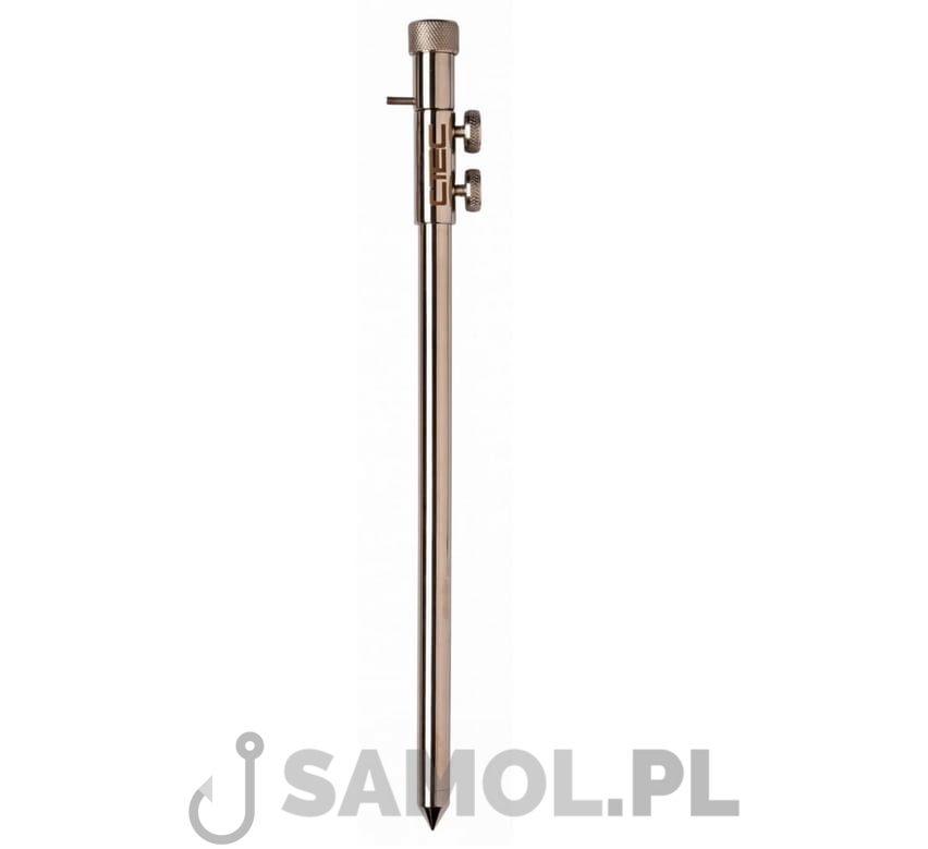 Stainless Steel Banksticks to solidne, bardzo wytrzymałe podpórki. Wykonane zostały z wysokiej jakości stali nierdzewnej i posiadają dwa pokrętła dokręcające, które idealnie trzymają i zapobiegają obracaniu się górnej części podpórki. Gwarantuje to, że gdy je zakręcisz, będą naprawdę mocno zabezpieczone. Całość nie ślizga się, nawet po założeniu na nie buzzerbarów i postawieniu na nich wędek.