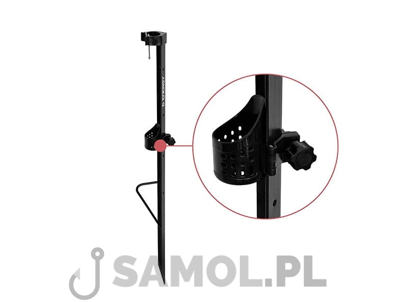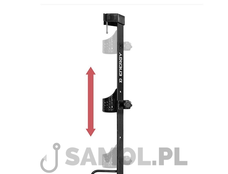 Jedną z kluczowych zalet podpórki Delphin ENERGY jest regulowany uchwyt na wędkę, który może bezpiecznie pomieścić wędki sumowe o różnych długościach. Uchwyt jest wyposażony w kilka otworów, które służą do odprowadzania niechcianej wody. Aby zapobiec wyskoczeniu wędki podczas brania, podpórka jest wyposażona w niezawodny i wystarczająco mocny mechanizm blokujący na górze. Dzięki tym cechom możemy mieć pewność, że sumówka jest solidnie zabezpieczona nawet w trakcie brań największych sumów.