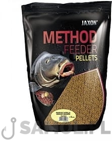 Pellet Jaxon Method Feeder zawiera mikrocząstki i aromaty bardzo szybko przyciągające ryby. Produkt ten może być również stosowany w formie suchej do punktowego nęcenia lub służyć jako dodatek zanętowy.