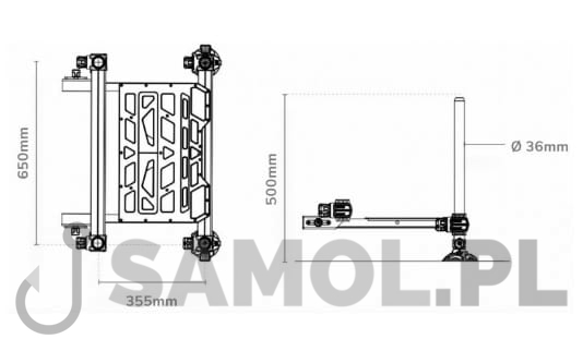 - Rozstaw nóg: szer. 65cm; dł. 35cm