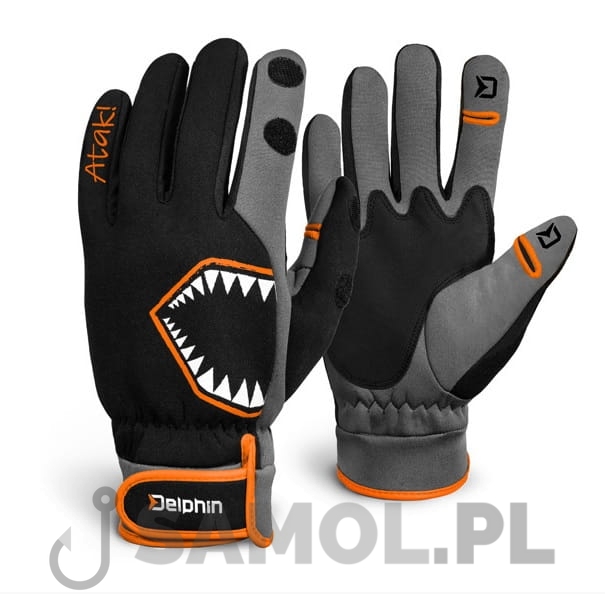 Rękawiczki neoprenowe Delphin Atak Free ogrzeją dłonie nawet w najchłodniejsze dni. Dokładne wykończenie rękawic przenosi wędkarstwo zimowe na zupełnie inny poziom. Dużym plusem jest wzmocniona powierzchnia na dłoni, która wyposażona jest w warstwę antypoślizgową i pozwala na komfortowe łowienie przez całą wyprawę. Odpinane elementy na końcu kciuka i palca wskazującego ułatwiają montaż drobnych akcesoriów i przyspieszą czas montażu. Aby zapobiec przedostawaniu się chłodu lub niechcianej wody do rękawic, wokół nadgarstka jest element wykonany z wszytej gumy, który można dodatkowo regulować za pomocą paska ściągającego z rzepem. Ponadczasowy wygląd w stylu Attack nie pozostawi żadnego fana spinningowania na zimno.