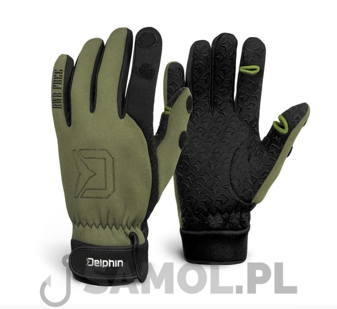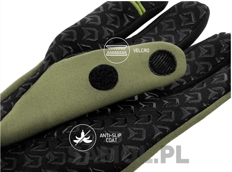 Rękawiczki neoprenowe Delphin RWR Free zapewnią ciepło w dłonie nawet w najchłodniejsze dni. Dokładne wykończenie rękawic przenosi wędkarstwo zimowe na zupełnie inny poziom. Dużym plusem jest gumowana powierzchnia na dłoni, która wyposażona jest w antypoślizgową, warstwę z logo Delphin. Zdejmowane elementy na końcu kciuka i palca wskazującego, z możliwością mocowania na rzep, ułatwiają montaż drobnych akcesoriów i przyspieszą czas ich montażu. Aby zapobiec przedostawaniu się chłodu lub niechcianej wody do rękawic, wokół nadgarstka jest element wykonany z wszytej gumy, który można dodatkowo regulować za pomocą paska ściągającego z rzepem. Połączenie kolorów zielonego i czarnego sprawia, że rękawice RWR Free są idealnym towarzyszem zarówno podczas wędkowania, jak i innych zajęć rekreacyjnych.