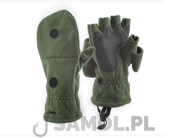 Niezwykle komfortowe rękawice wędkarskie z polaru. zapewniają komfort i ciepło w trakcie oczekiwań na branie. Posiada specjalne nakładki, umożliwiające swobodny ruch palców. Jedna nakładka jest na palce, druga na sam kciuk. Nakładkę na cztery palce wystarczy odchylić do tyłu i zaczepić rzepem, identyczny system posiada nakładka na kciuk. Podnosi to zakres zastosowań tych rękawic. Delphin CAMP mają idealny krój i doskonale pasują do zdecydowanej większości dłoni. Na nadgarstku wszyto gumkę, na tym samym poziomie znajduje się klip. Nad nim wszyty jest pasek ściągający, który zwiększa komfort użytkowania. Dodatkowo po wewnętrznej stronie wszyta nakładka antypoślizgowa z miękkiej gumy, przydatna przy trzymaniu wędziska w czasie holu Rękawice Delphin CAMP są niezbędnym elementem każdego wroga przemarzniętych do szpiku kości dłoni.