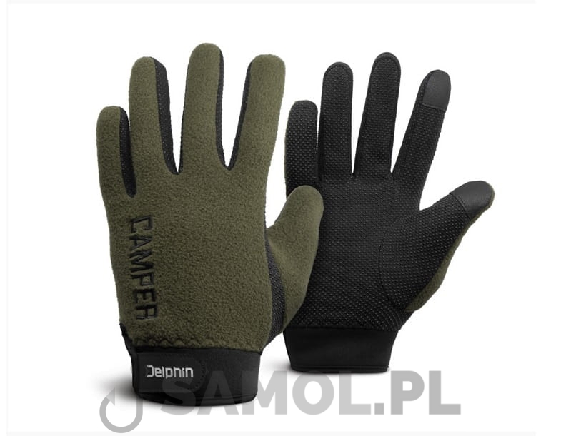 Delphin CAMPER to wygodne rękawice polarowe, dzięki którym nie musisz się martwić o spierzchnięte dłonie, niezależnie od tego, czy używasz ich do wędkowania zimą czy podczas spacerów na łonie natury. Od strony spodniej, dłoń i palce posiadają antypoślizgową powierzchnię. Chwytanie lub przenoszenie sprzętu wędkarskiego, a także innych przedmiotów, będzie znacznie łatwiejsze w porównaniu ze zwykłymi rękawicami zimowymi. Rękawice wyposażone są także w odpinany pasek z rzepem na nadgarstkach, który zapobiega przedostawaniu się zimnego powietrza lub wody do środka. Dużym atutem jest możliwość sterowania ekranami dotykowymi telefonów komórkowych czy tabletów bez konieczności ściągania rękawic.