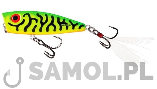 Salmo Rattlin Pop jest ostatnią innowacją w dziedzinie przynęt powierzchniowych. Może on być prowadzony tak, jak klasyczny popper albo techniką walk-the-dog z różną prędkością. Ozdobiona piórkami i flashem tylna kotwiczka oraz wbudowana w korpusie grzechotka, to perfekcyjna kombinacja pięknego wzornictwa i skuteczności.