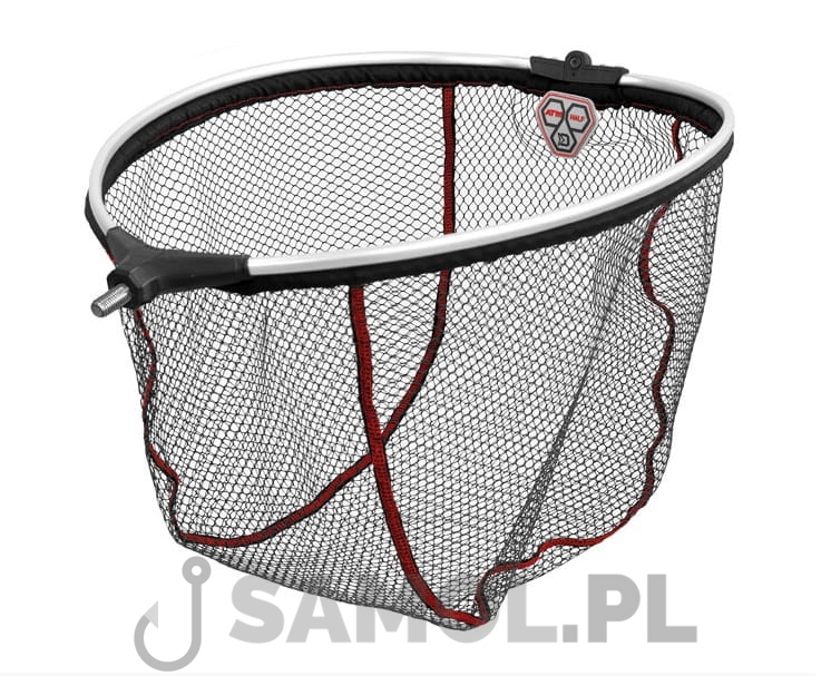 Delphin ATM Floaty RN HALF to pływający kosz podbieraka, której największa zaleta kryje się niewątpliwie w wymiarach transportowych. Dzięki pomysłowemu systemowi składania możliwe jest złożenie kosza na pół, co znacznie zmniejsza jego wymiary i dzięki temu można go przenosić np. w pokrowcu z wędkami. Wysokiej jakości czarna siatka o oczkach 8x8 mm osadzona jest w bardzo lekkiej, ale mocnej ramie aluminiowo-srebrnej. Dodatkowo cała siatka jest podgumowana, dzięki czemu nie wchłania niechcianych zapachów, a jej wyschnięcie to kwestia krótkiego czasu. Kosz idealnie pasuje do lekkiej serii sztyc ATOMA, jednak dzięki uniwersalnemu gwintowi pasuje do większości sprzedawanych sztyc na rynku.