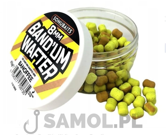 Band'um Wafters to przynęta, która ma wyporność pomiędzy przynętą denną a pop-upem, zaprojektowana tak, aby przeciwdziałać ciężarowi haczyka. Jest to idealna przynęta do stosowania w przyponach z gumką. Jej unikalny cylindryczny kształt z bulwiastymi końcami oznacza, że można ją z łatwością zawiązać za pomocą Pellet Bander lub Bait Bander, a opaska zostaje zgrabnie umieszczona w środkowej, węższej części Band'um. Band'um Wafter jest również idealną przynętą do łowienia na pellet waggler, ponieważ tonie wolniej niż standardowa przynęta. Band'um Wafter spędza więcej czasu w strefie żerowania ryb niż standardowa przynęta denna, dając karpiowi więcej okazji do brania. Band'um Wafters to przynęty wybierane przez wielu ekspertów, ponieważ są idealne na wszystkie gatunki ryb.