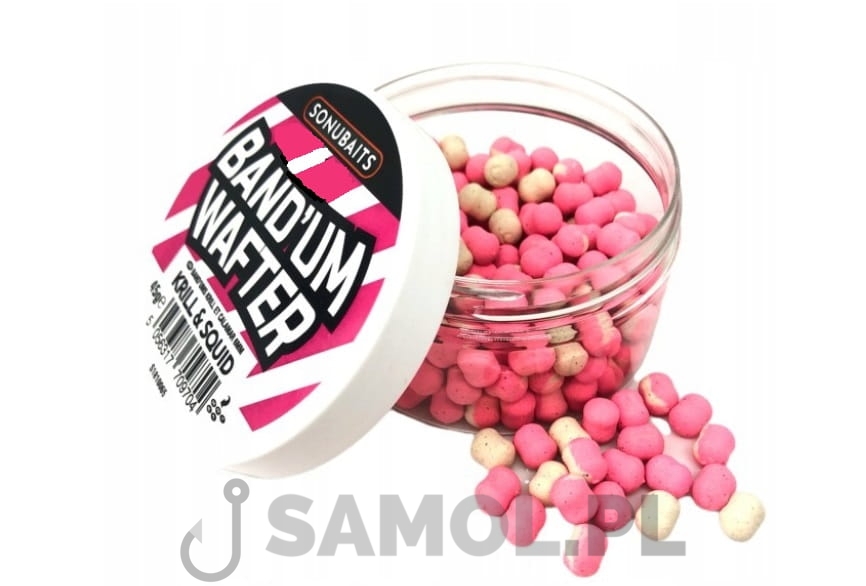 Band'um Wafters to przynęta, która ma wyporność pomiędzy przynętą denną a pop-upem, zaprojektowana tak, aby przeciwdziałać ciężarowi haczyka. Jest to idealna przynęta do stosowania w przyponach z gumką. Jej unikalny cylindryczny kształt z bulwiastymi końcami oznacza, że można ją z łatwością zawiązać za pomocą Pellet Bander lub Bait Bander, a opaska zostaje zgrabnie umieszczona w środkowej, węższej części Band'um. Band'um Wafter jest również idealną przynętą do łowienia na pellet waggler, ponieważ tonie wolniej niż standardowa przynęta. Band'um Wafter spędza więcej czasu w strefie żerowania ryb niż standardowa przynęta denna, dając karpiowi więcej okazji do brania. Band'um Wafters to przynęty wybierane przez wielu ekspertów, ponieważ są idealne na wszystkie gatunki ryb.