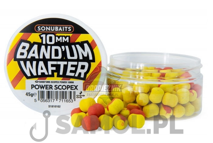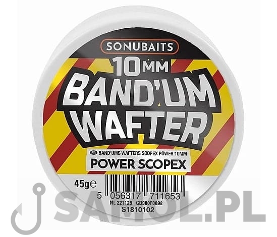 Band'um Wafters to przynęta, która ma wyporność pomiędzy przynętą denną a pop-upem, zaprojektowana tak, aby przeciwdziałać ciężarowi haczyka. Jest to idealna przynęta do stosowania w przyponach z gumką. Jej unikalny cylindryczny kształt z bulwiastymi końcami oznacza, że można ją z łatwością zawiązać za pomocą Pellet Bander lub Bait Bander, a opaska zostaje zgrabnie umieszczona w środkowej, węższej części Band'um. Band'um Wafter jest również idealną przynętą do łowienia na pellet waggler, ponieważ tonie wolniej niż standardowa przynęta. Band'um Wafter spędza więcej czasu w strefie żerowania ryb niż standardowa przynęta denna, dając karpiowi więcej okazji do brania. Band'um Wafters to przynęty wybierane przez wielu ekspertów, ponieważ są idealne na wszystkie gatunki ryb.