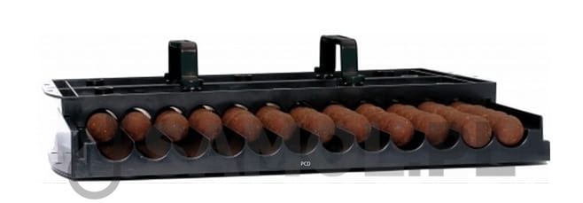 Duża matryca do rolowania kulek proteinowych. Pozwala na produkcję sporej ilości kulek w warunkach domowych. Górna część matrycy posiada mocne uchwyty co pomaga w wygodnym rollowaniu kuleczek. Do wyboru dwie średnice: 10 i 14mm.