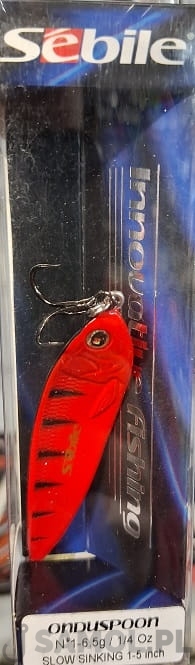 Błystka wahadłowa Onduspoon firmy Sebile wykonana jest z twardego plastiku, wyglądem imituje żywą rybkę, co dodatkowo potęgują oczy 3D. Wielokomorowe ciało wypełnione jest hałaśliwymi grzchotkami, które pod wodą wywołują wabiące dźwięki.