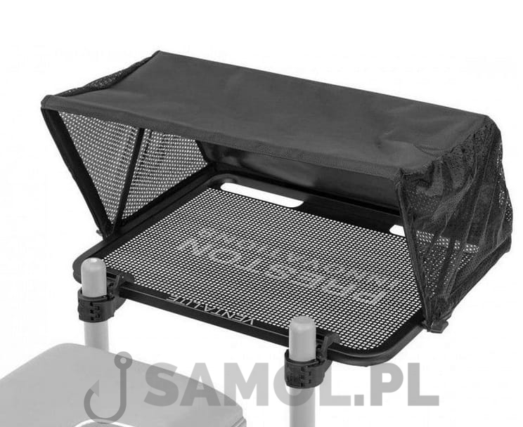 Wystarczająco duża, aby pomieścić sporą ilość przynęt pod przykryciem z dala od deszczu lub słońca. Podnieś parawan i zablokuj go w odpowiedniej pozycji. Bardzo mocne zaciski na nogi umożliwiają użycie platformy w większości przypadków bez wspornika. Jednak gdy posiadasz ekstremalną ilość zanęt - użyj ramienia bocznego Uni Side Tray Support Arm.