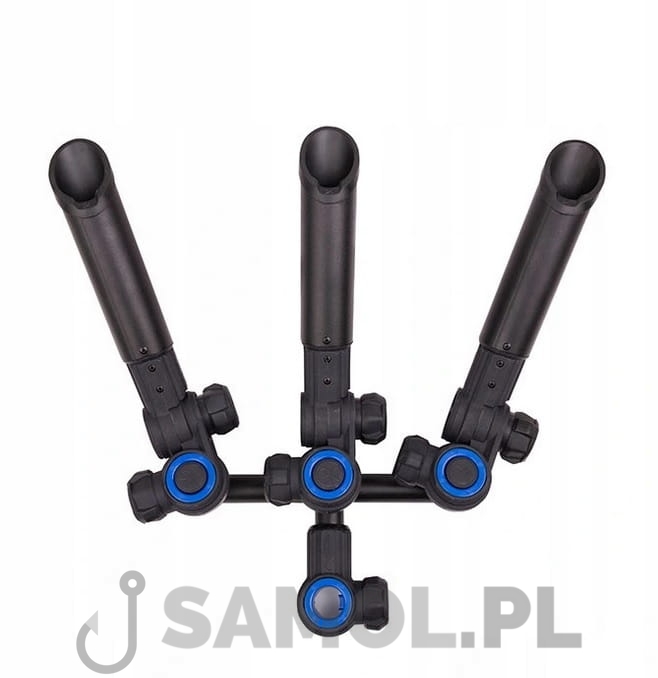 Uchwyt na wędki Matrix 3D-R Multi Angle Rod Holder pomieści 3 wędki, dodatkowo dla zwiększenia komfortu każdy uchwyt można osobno regulować w pionie jak i w poziomie co daje nam wiele możliwości konfiguracji. Uchwyt ten pasuje na okrągłe nogi o średnicy: 25, 30, 36mm. Wytrzymały mechanizm regulujący kąt ustawienia zapewnia dużą stabilność. Główny przegub został dodatkowo usztywniony dla większej wytrzymałości. Ochronna wstawka z termoplastycznej gumy podtrzymuje dolniki wędek.