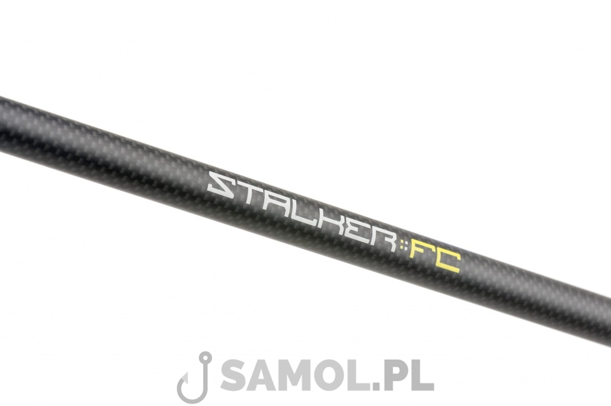 Stalker FC to wysokiej klasy wędzisko karpiowe. Posiada cienki i mocny blank wykonany z wysoko modułowego włókna węglowego, które dodatkowo zostało wzmocnione oplotem 3K co idealnie podkreśliło wygląd i styl tej wędki. Rękojeść wykonana została z najwyższej jakości korka. Blank uzbrojony został w uchwyt kołowrotka fuji oraz mocne i lekkie przelotki typu SiC Ultralight. Wędka ta charakteryzuje się niską wagą oraz rewelacyjną progresywną akcją. Idealnie sprawdzi się podczas łowienia na niedużych odległościach, stalkingu, łowienia w małych miejskich zbiornikach lub podczas holów z pontonu i łodzi. Ich długość po złożeniu sprawia, że są łatwe w transporcie. Pomimo cienkiego blanku wędki posiadają naprawdę ogromną moc i bez problemu poradzą sobie z największymi okazami.